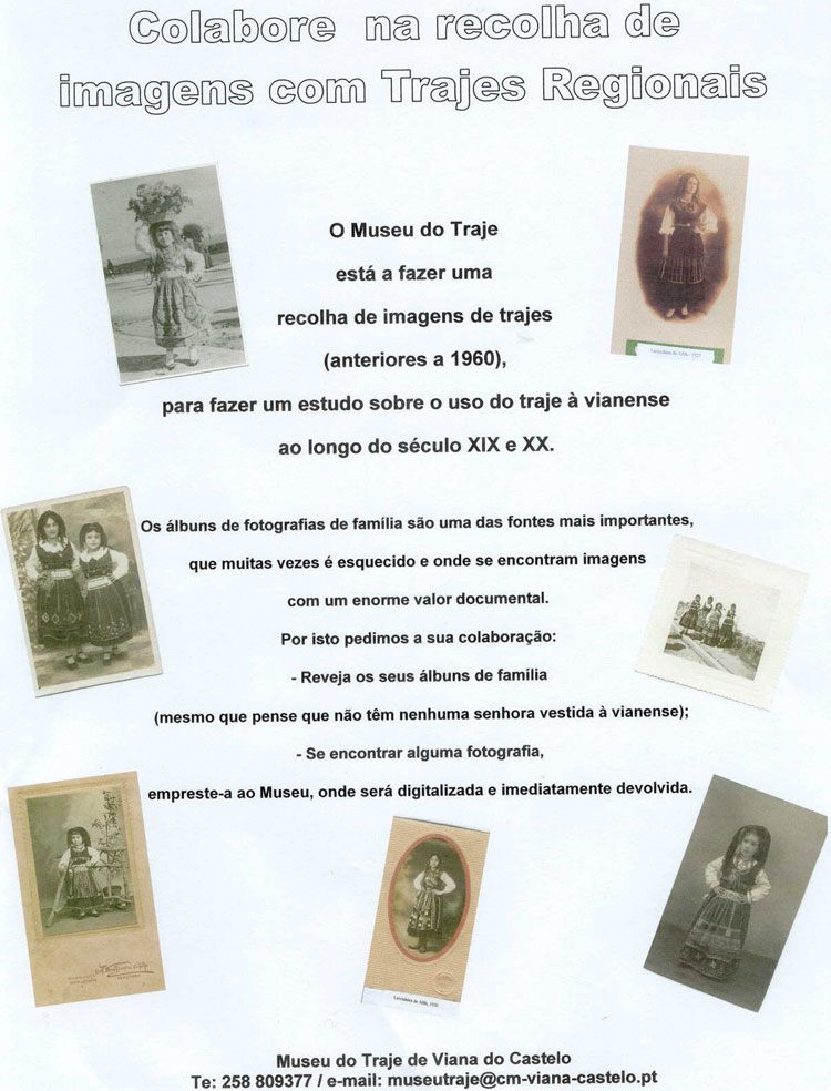 O Museu do Traje de Viana do Castelo procura imagens de raparigas vestidas "à vianense"(de preferência anterioes a 1960), para poder constituir uma Base de Dados para apoio de estudos sobre a utilização do Traje Popular Vianense.