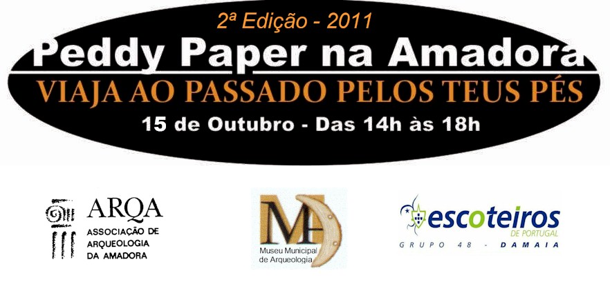 No próximo dia 15 de Outubro de 2011 (Sábado) a ARQA, em conjunto com o Museu Municipal de Arqueologia da Amadora e o Grupo 48 da Associação de Escoteiros de Portugal, organiza a 2ª edição do peddy paper na Amadora.